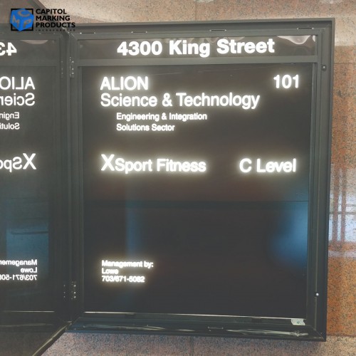 Building directories are an essential source of information for visitors to commercial and residential buildings. As a key feature of an entry space and one of the first visuals for visitors; a directory board can immediately reflect the overall image of the building.Our directory boards are custom built per order and can meet a wide range of specifications: