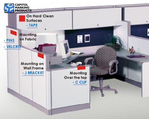 Cubicle Signs are designed to be attached to workstation screens or cubicle partitions within a workstation area. Cubicle Signs are offered in a range of sizes and types and likewise can be installed in the space in a variety of ways. Contact us with the needs of your space, and we will be happy to help you find the best workstation signage installation strategy to fit your needs.